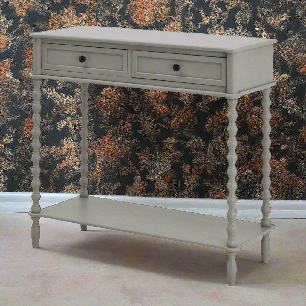 Spindle Leg Console Table with Two Drawers in Warm Grey
