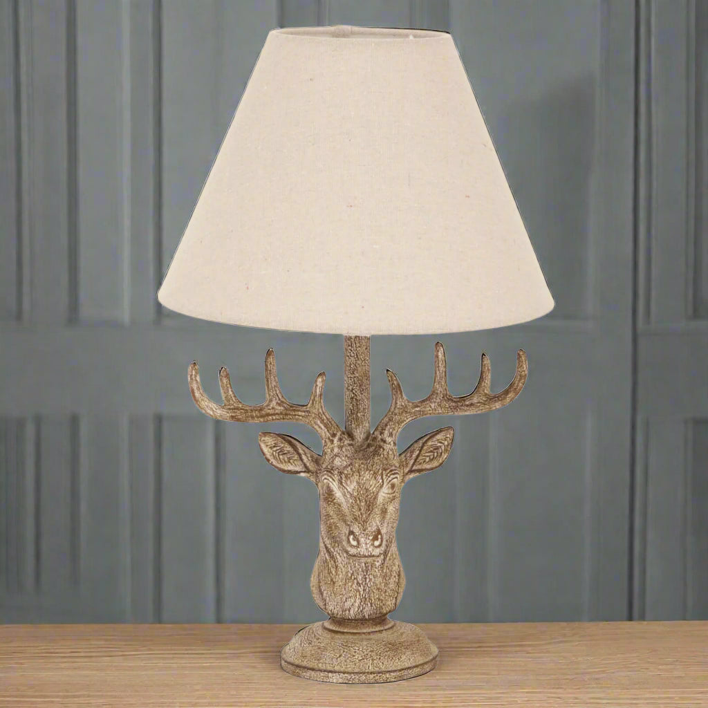 Stag Head Table Lamp with Natural Linen Shade