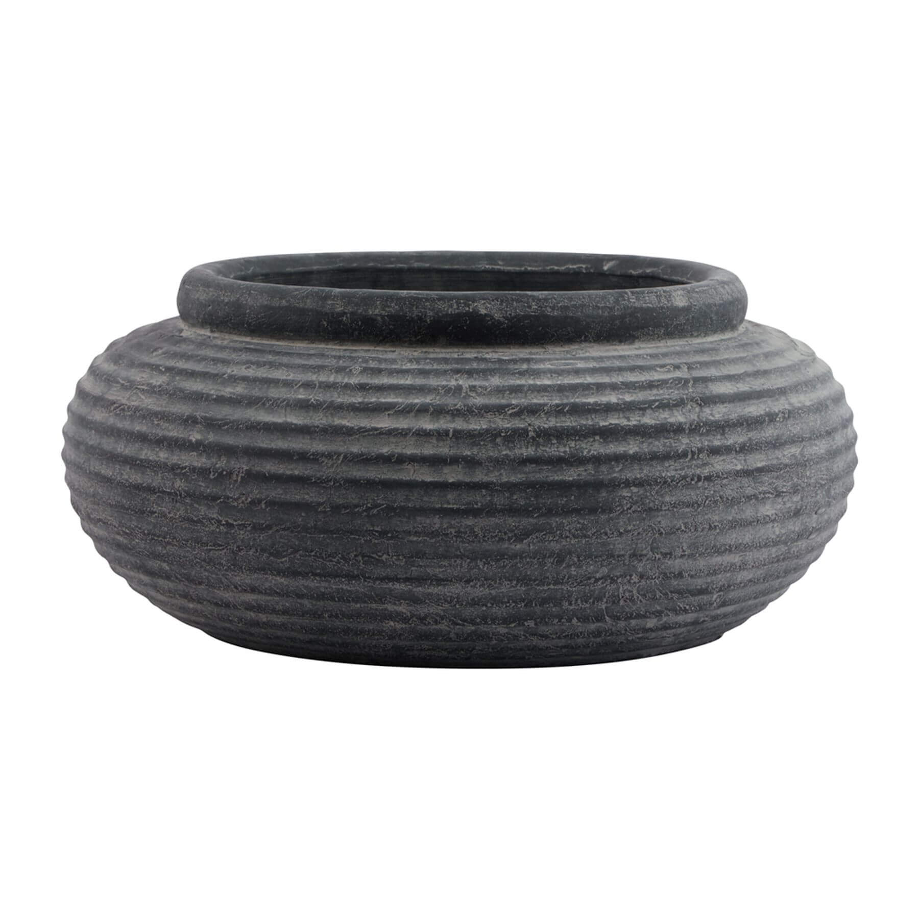 Grey Ribbed Round Ceramic Planter