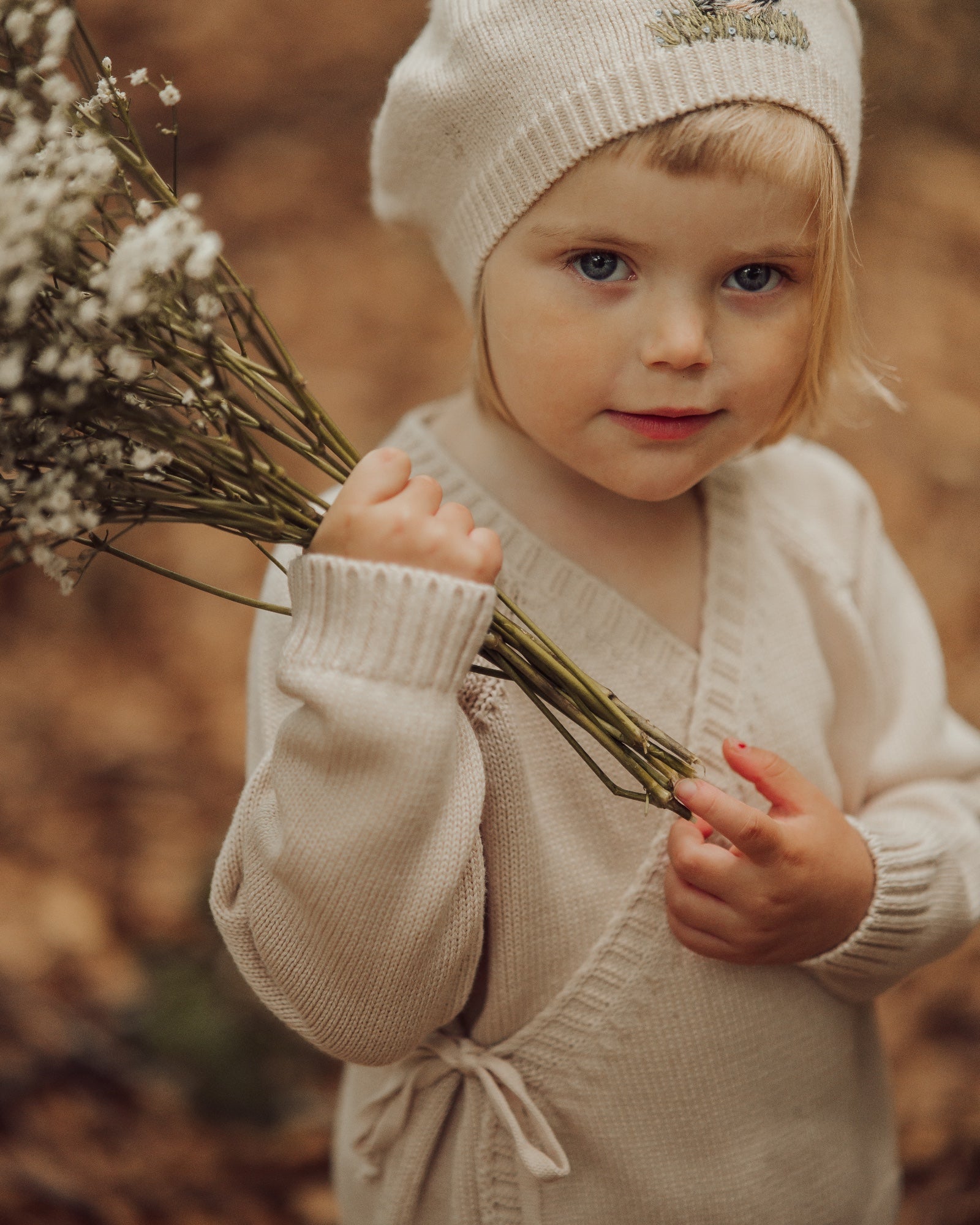 Rose Embroidered Cardigan in Beige