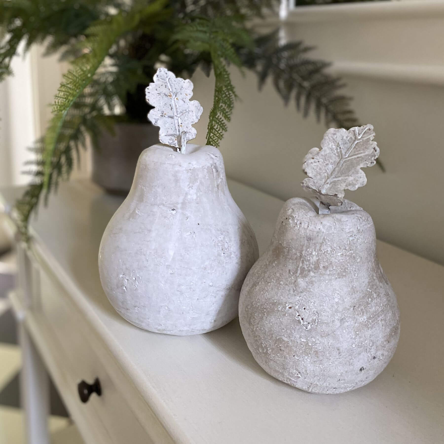 Cream Stone Pear Sculpture